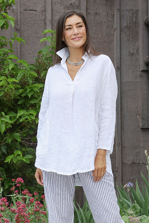 Stylish Natural Fiber Tops for Women.  Does your sustainable wardrobe lack a versatile top? We have a range of choices to keep you fresh and looking polished all season long. Each in earth friendly natural fibers, ethically produced in small batches right here in Colorado. Discover our collection of comfortable natural fiber tops for women. Made from organic fabrics like linen, hemp, and organic cotton.