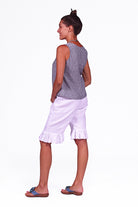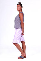 This top features a traditional fit, with a scoop neckline and bra friendly straps. In a lightweight hemp and organic blend, it is crafted from a vintage inspired indigo ticking stripe. This tank features a darted bust and back seaming for a slightly structured and flattering silhouette, without being too fitted. The hemline has a slight shirt tail curve, falling a bit longer in back.